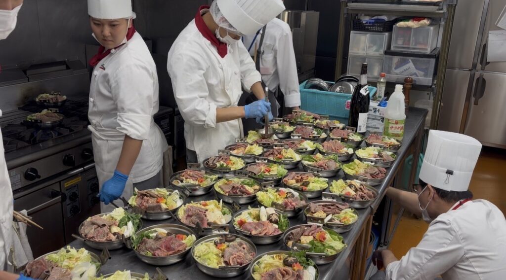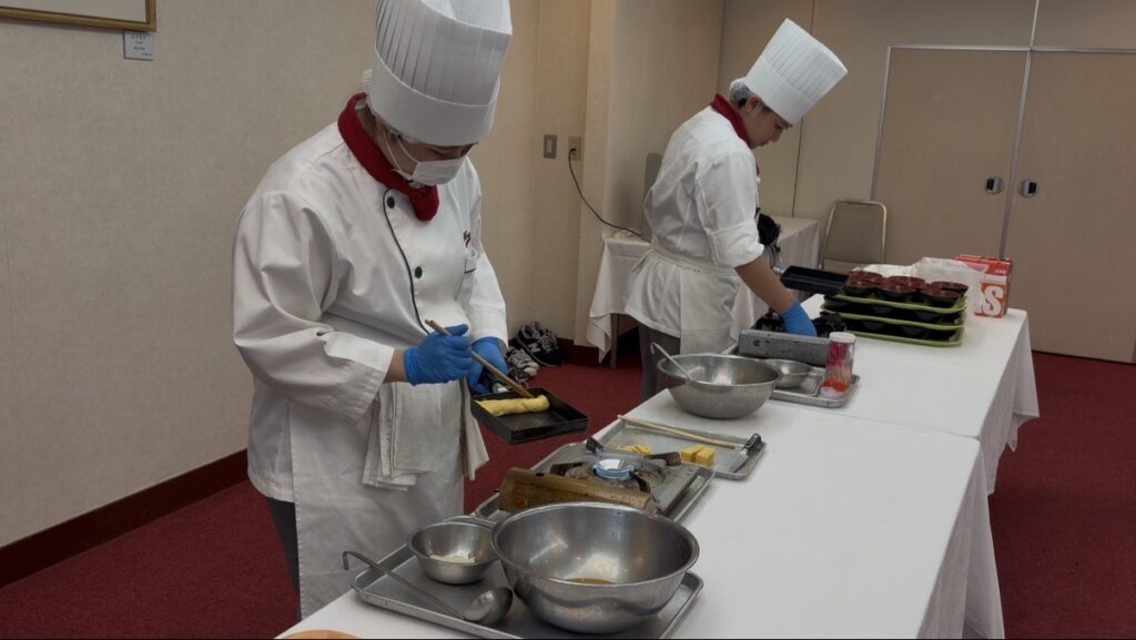 レストラン実習開始✨ 2025.10.22 こんにちは!調理師科です。10月からマイスター科2年生によるレストラン実習が始まりました🍲 最初の数回は練習ですが、本番に備えてみんな頑張っています👏1000円で和洋中、色々なコース料理が食べられるのでかなりお得ですね♫ 保護者の方、ぜひお待ちしております👐 日本料理は、お客様の前で出汁巻き玉子を焼きました🍳熱々出来立てを提供できてとても好評でした👍 西洋料理と中国料理はこれからどんな料理を作るのか楽しみですね🎵