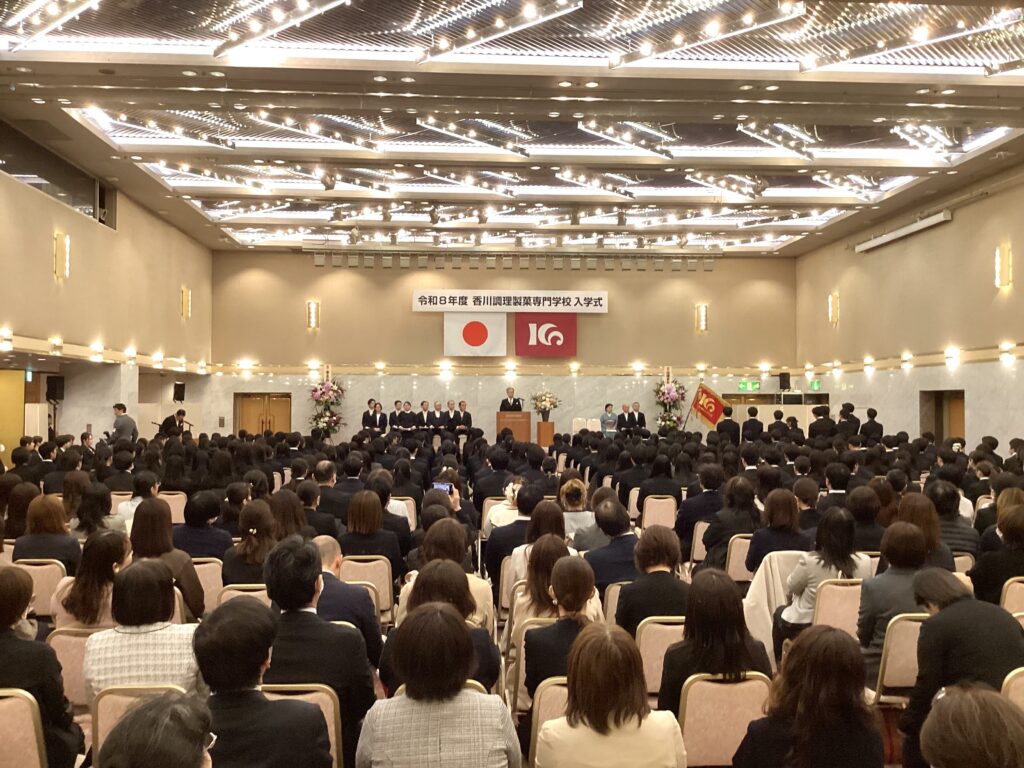 令和8年度 入学式が挙行されました 2026.04.02 令和8年4月2日(木)香川調理製菓専門学校の入学式がアルカディア市ヶ谷で挙行されました。 これからの生活への夢、希望をもって臨んだ新入生を迎えることができました。教職員一同、新入生のみなさんを心より歓迎し、応援していきます。新入生の皆様、保護者の皆様、ご入学おめでとうございます。